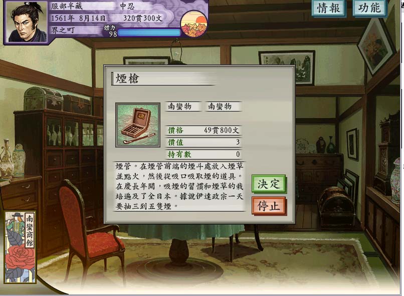 之後把政宗人物卡入手後,開新遊戲玩政宗中,半藏的未修改記錄不小心存錯檔被洗掉了orz|||
