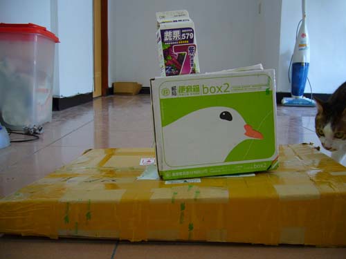 總之,以為是一個大箱子的我,最後拿到一個扁平的大盒子與一個小箱子,當然還有剛剛買的飲料。