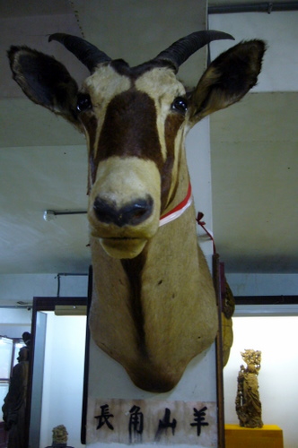 牆上有山羊頭,另一邊有長頸鹿頭....(當然是假的)
