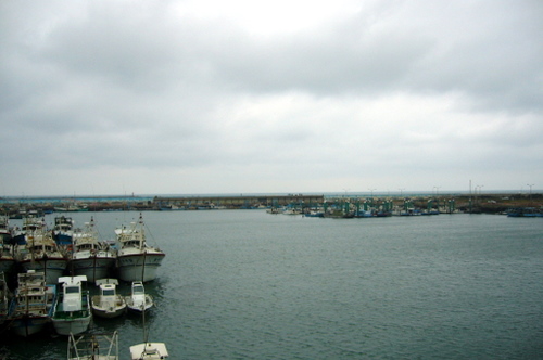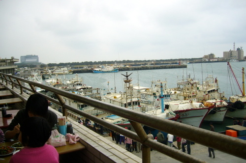 之後去南寮的漁港吃中餐,坐在外頭的位置吃飯,可以直接看到海。